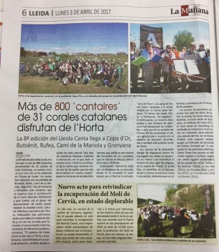 2 d’abril 2017 – “Lleida canta a l’Horta”