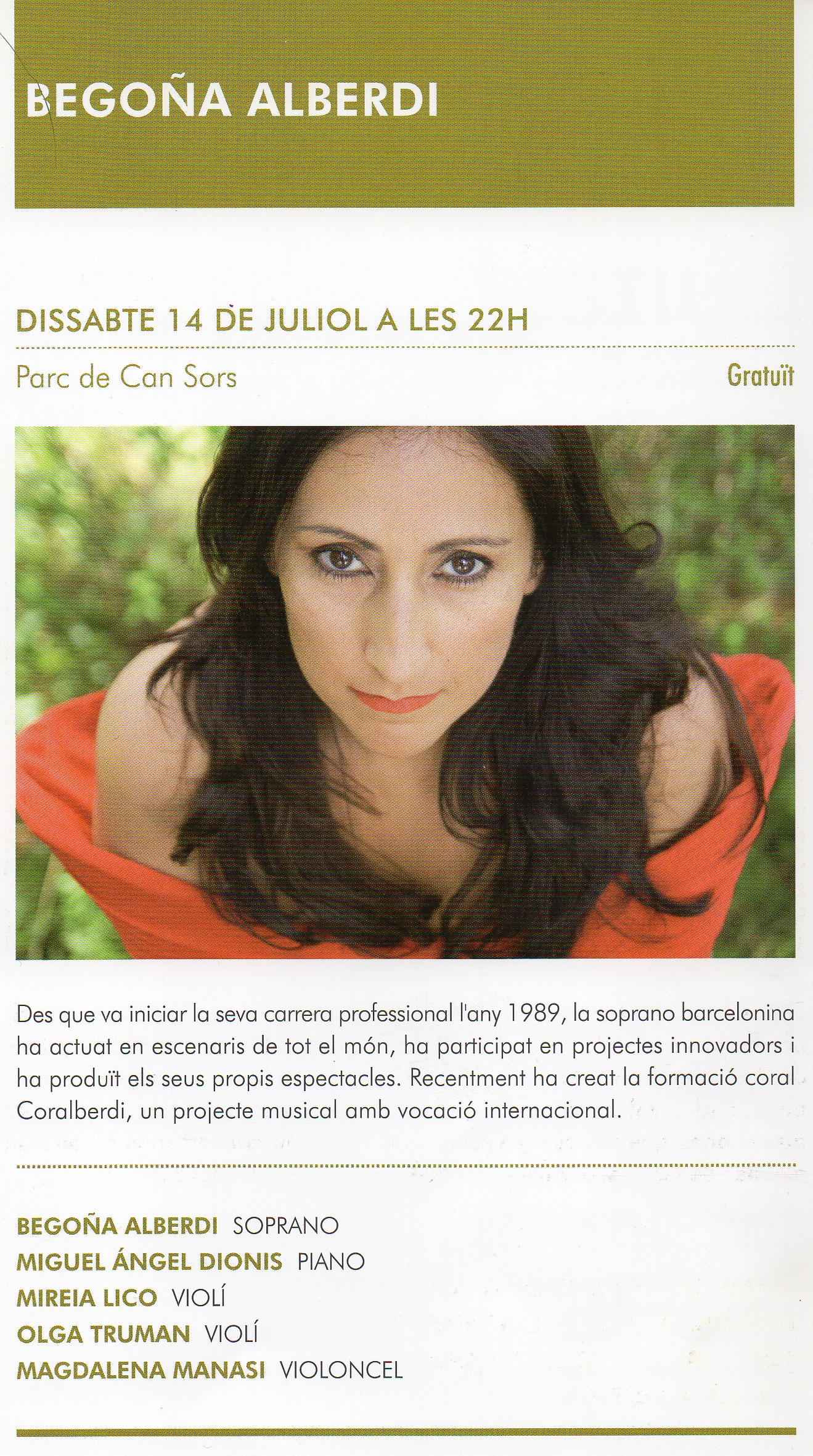 Participació, encara com a Coralberdi, al Festival d’Estiu Alella 2012 acompanyant a la soprano Begoña Alberdi.